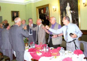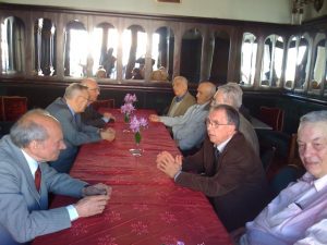 Był rok 2004, a więc minęło równe 50 lat od zdania przez nas matury. Jeden z naszych kolegów, Grzesiek Cisowski, zainicjował starania, by doprowadzić do jubileuszowego spotkania. Sobie tylko znanymi sposobami wszedł w posiadanie możliwych do uzyskania adresów i tak, w liczbie 14 osób, spotkaliśmy się w restauracji Pollera przy ul. Szpitalnej (zdj. 1 i 2). Było to nasze pierwsze spotkanie i każdy z nas, już emerytów, starał się poinformować pozostałych o tym, jak minęło mu tych pięćdziesiąt lat. Efekt tego spotkania był taki, że postanowiliśmy regularnie je kontynuować i w miarę możliwości dotrzeć do jak największej liczby naszych kolegów szkolnych.