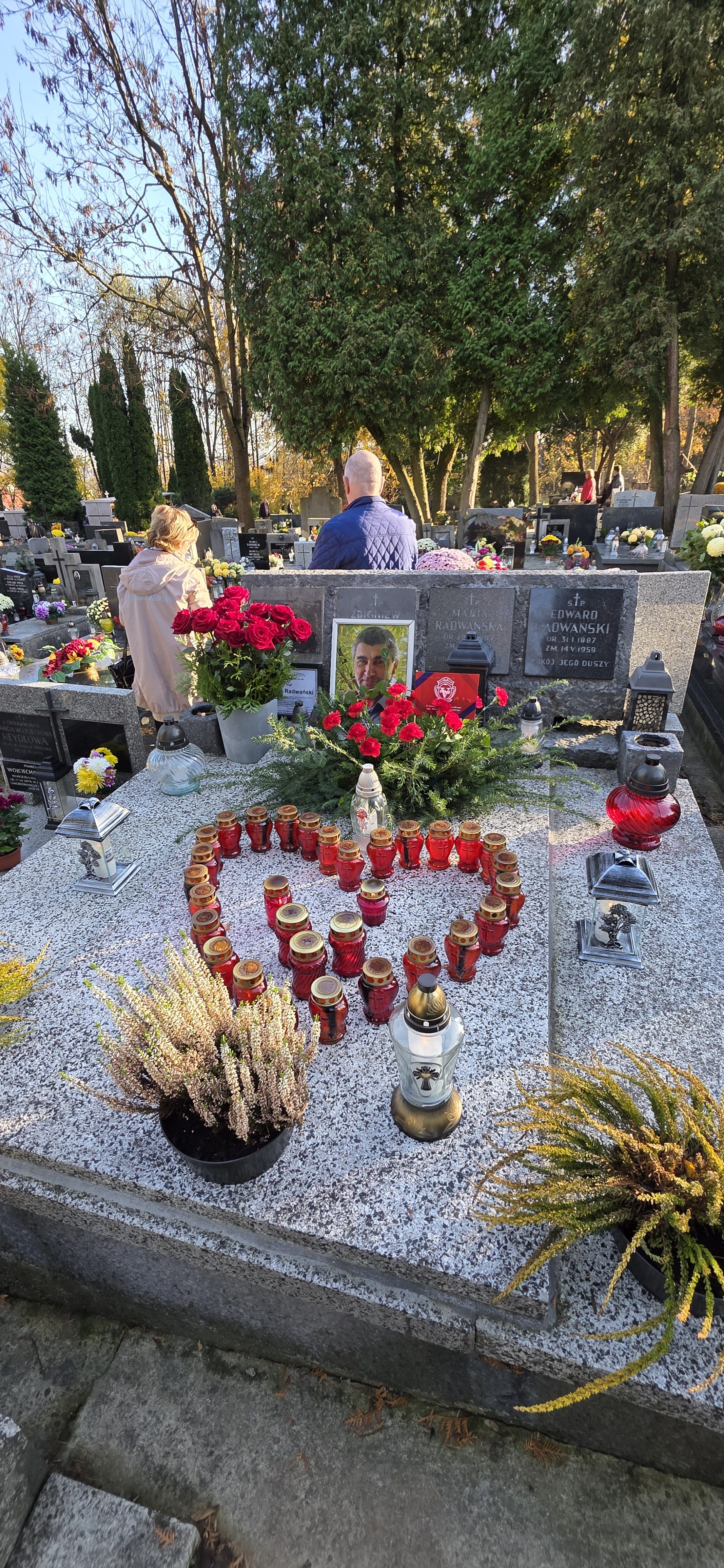 Dotąd w tym czasie przypominaliśmy o potrzebie zapalania zniczy, indywidualnej pamięci, cichego wspomnienia. W roku 2025 dodaliśmy do tego tradycji nowy wymiar – znak widoczny, delikatny, a zarazem wspólnotowy: chorągiewkę z emblematem V LO i SAIP, która stała się symbolem wdzięczności wobec tych, którzy tworzyli historię Zakładu.