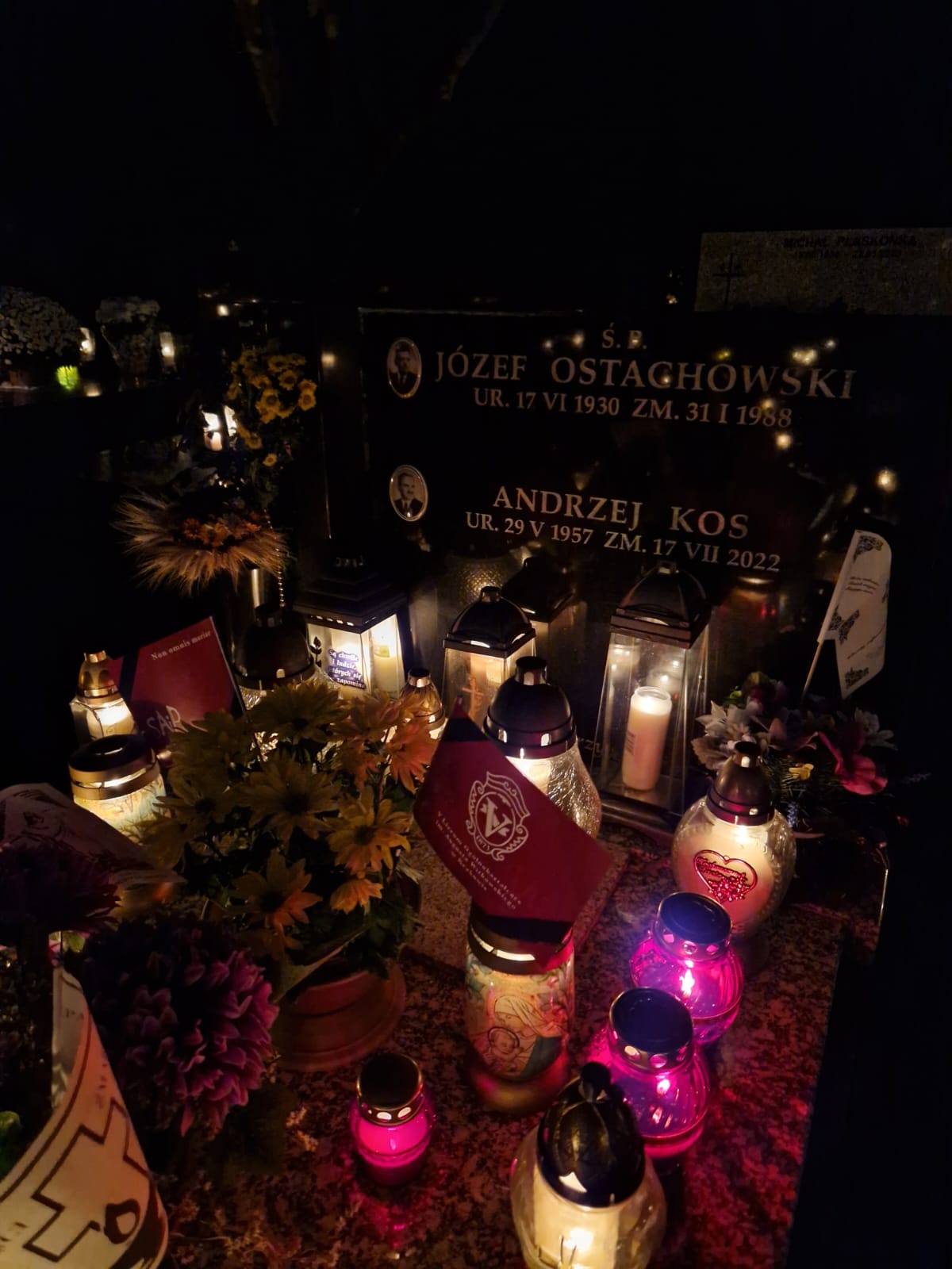 Dotąd w tym czasie przypominaliśmy o potrzebie zapalania zniczy, indywidualnej pamięci, cichego wspomnienia. W roku 2025 dodaliśmy do tego tradycji nowy wymiar – znak widoczny, delikatny, a zarazem wspólnotowy: chorągiewkę z emblematem V LO i SAIP, która stała się symbolem wdzięczności wobec tych, którzy tworzyli historię Zakładu.